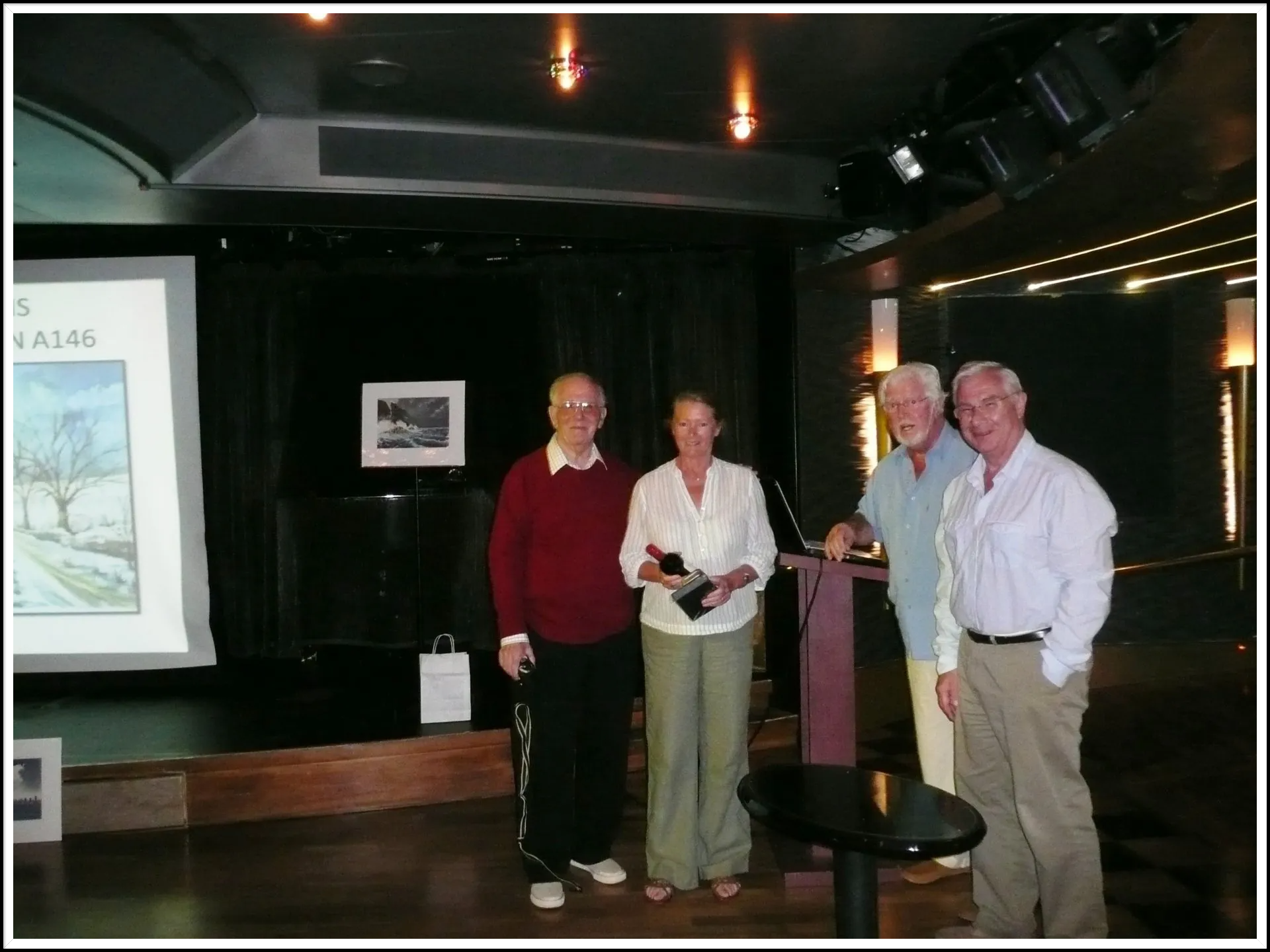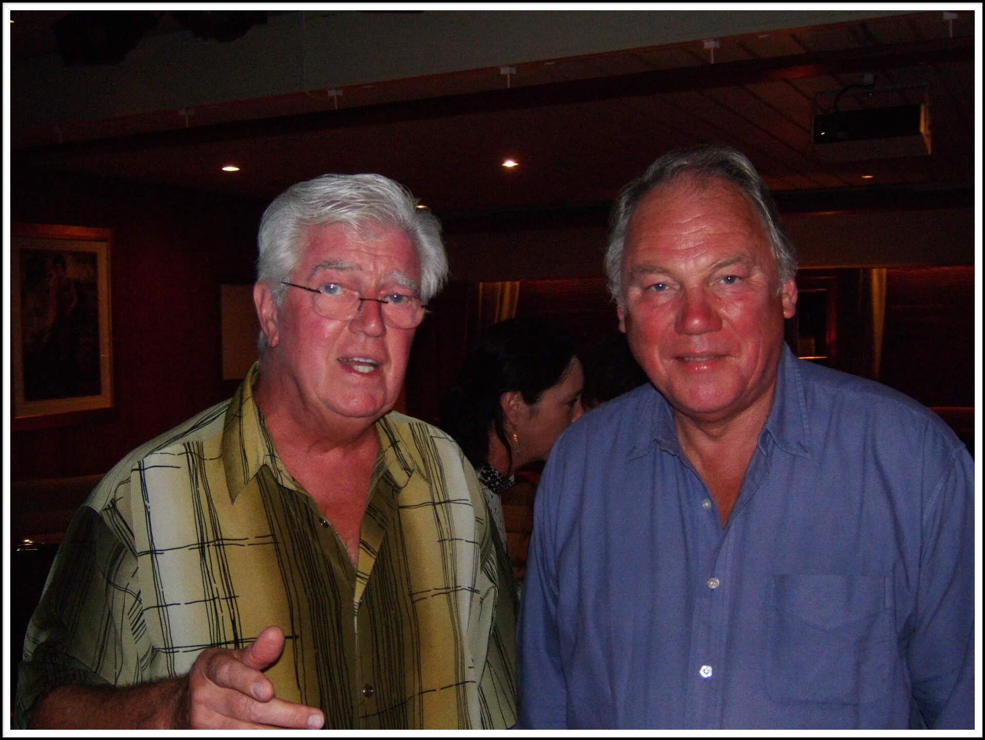 Frank and the late Brian Hanrahan doing a prize giving on a cruise ship.
