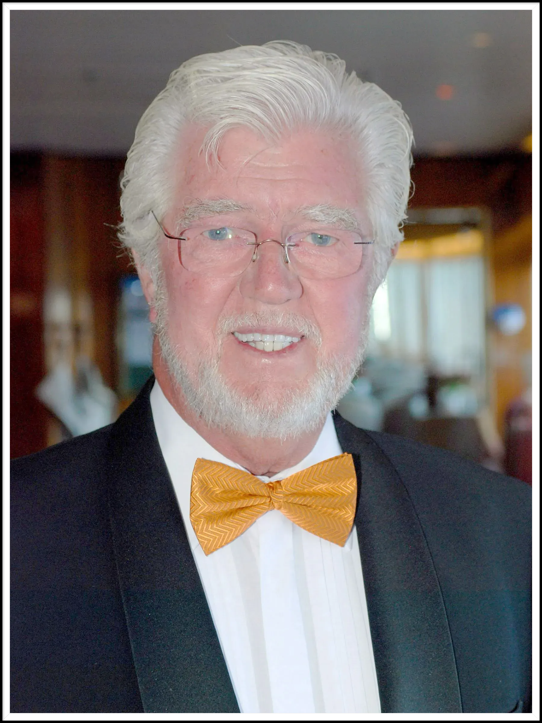 Frank with the late Peter Sissons doing a prize giving onboard a cruise ship.